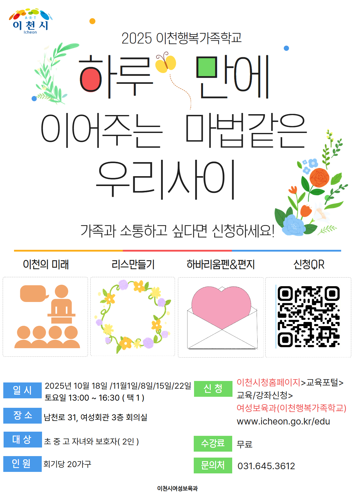 2025년 가족친화 문화학산 프로그램' 가족을 잇다' 홍보 안내