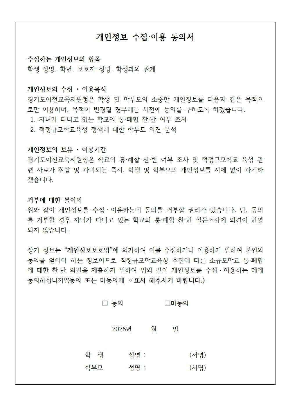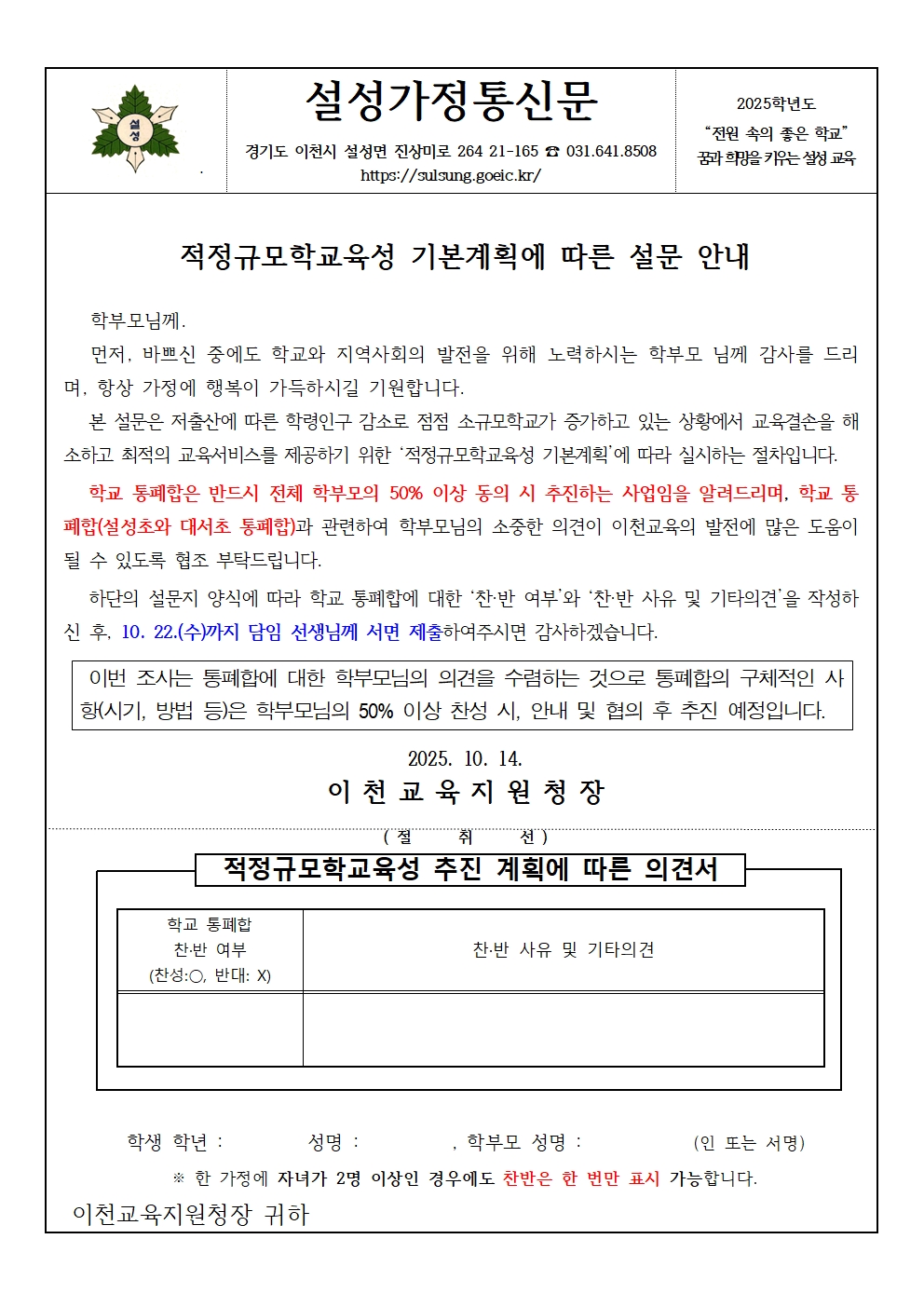 2025 적정규모학교육성 기본계획에 따른 설문 안내